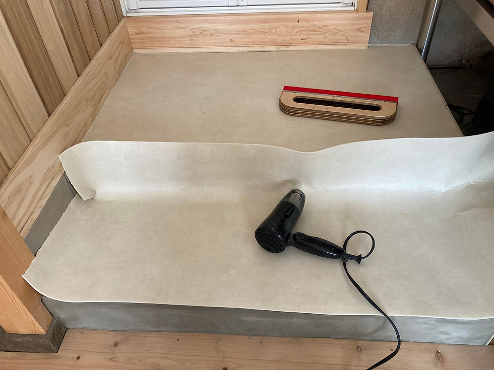 かすみがうら市 リフォーム 42025年3月22日読了時間: 1分インテリアハナワのブログをご覧頂きありがとうございます。本日はCF貼り工事です。下地処理を行い乾燥させます床糊を塗布床材が硬いのでドライヤーであぶりながら調整していきます店舗用2.3㍉の床材をなんとか貼り終えました白い見切り材を取付け完了貼る面積は少ないながらも寒さもあり材料が硬くなかなか思うように納まらないので大変でしたがなんとか仕上りました。この度はインテリアハナワまでご依頼頂きありがとうございました!