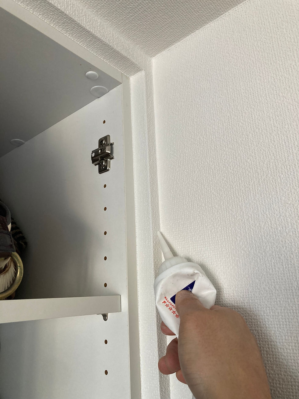 シワの部分も壁紙を巻かずに一度縁を切って細かく貼り分け、仕上げのコーキング※シワ防止の為
