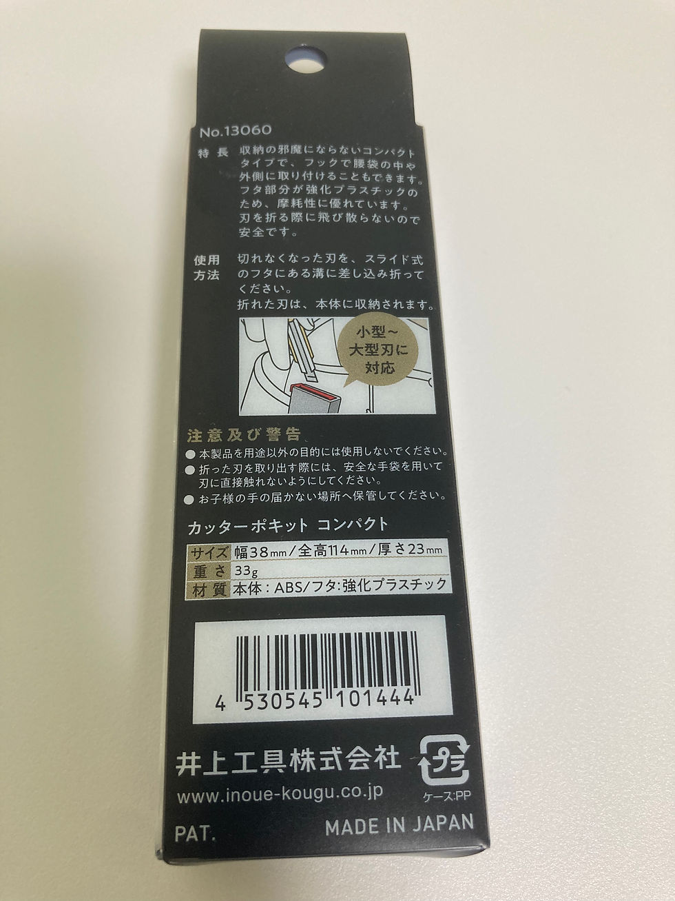 カッターポキット2025年4月16日読了時間: 1分インテリアハナワのブログをご覧頂きありがとうございます。新しい道具を購入しました、その名も「カッターポキット」です。カッターを折った際にそのまま折刃を保管できるケース一流工具メーカーである井上工具株式会社さんの新作汚れてるのが現在使用している旧型 右が新型コンパクトになり腰袋内で納まりが良いはずこんな感じですこれは本当に便利な道具でカッターの先を入れて少し力を加えるだけで簡単に折れます。次の現場で使用するのが楽しみです!